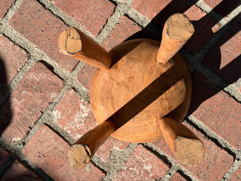 This wooden stool is vintage and may show signs of wear consistent with age and history. These are not considered defects.