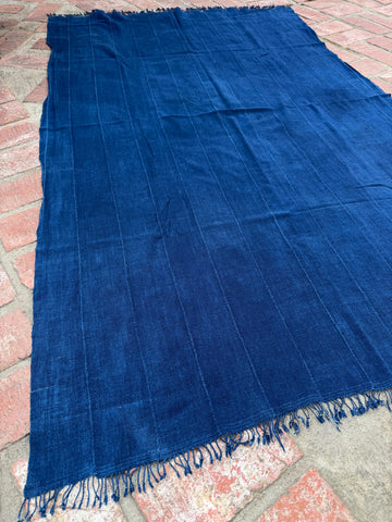 Vintage African Indigo Denim Mossi Mudcloth. Hand woven Malian cotton fabric is traditionally hand-dyed by a tribe in West Africa. Multiple pieces of cloth are hand woven together to make one, large cloth. These gorgeous mudcloths are perfect for styling and photo props, as a rug, wall decor, blanket, draped over a couch, or a beach blanket. They are also used to make pillows or upholster chairs. Each is very unique, no two are alike.