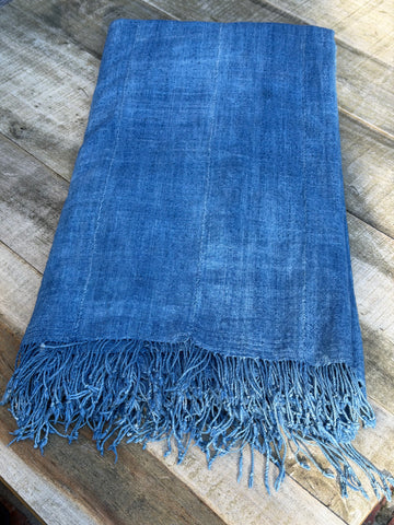 Vintage African Indigo Denim Mossi Mudcloth. Hand woven Malian cotton fabric is traditionally hand-dyed by a tribe in West Africa. Multiple pieces of cloth are hand woven together to make one, large cloth. These gorgeous mudcloths are perfect for styling and photo props, as a rug, wall decor, blanket, draped over a couch, or a beach blanket. They are also used to make pillows or upholster chairs. Each is very unique, no two are alike.