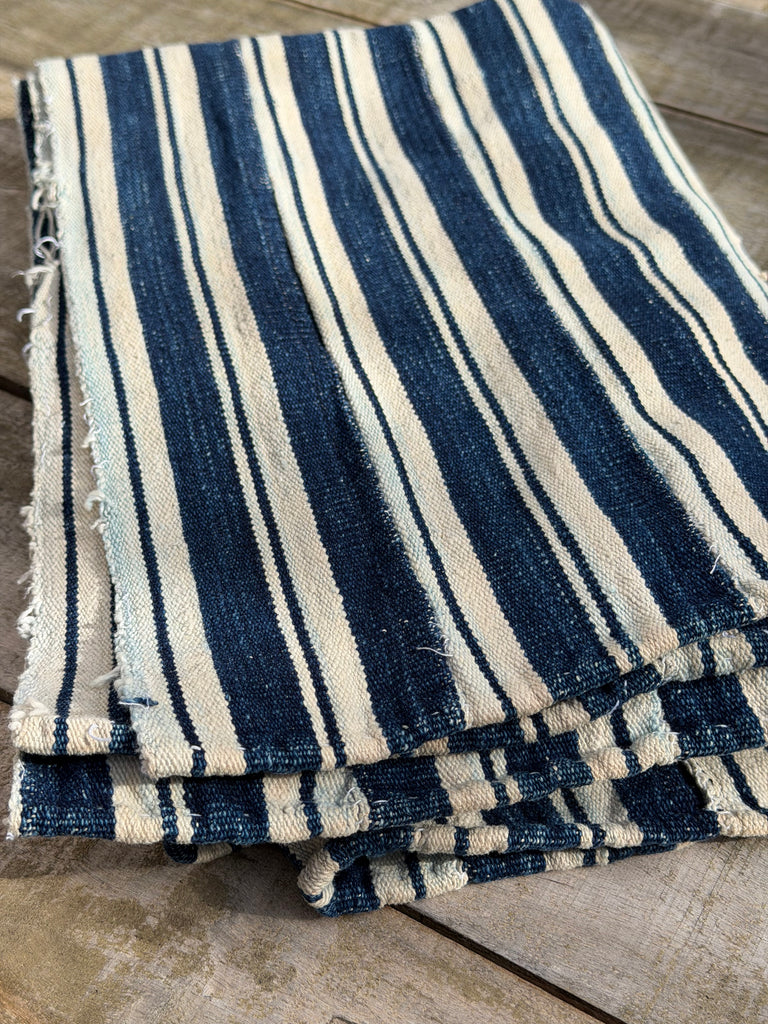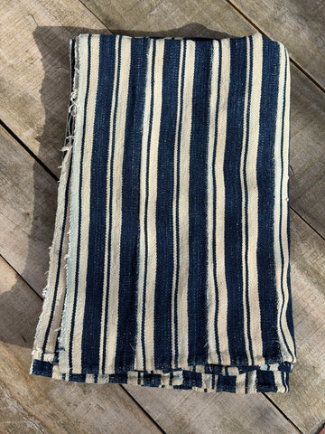 Vintage African Indigo Denim Mudcloth. Hand woven Malian cotton fabric is traditionally hand-dyed by a tribe in West Africa. Multiple pieces of cloth are hand woven together to make one, large cloth. These gorgeous mudcloths are perfect for styling and photo props, as a rug, wall decor, blanket, draped over a couch, or a beach blanket. They are also used to make pillows or upholster chairs. Each is very unique, no two are alike.